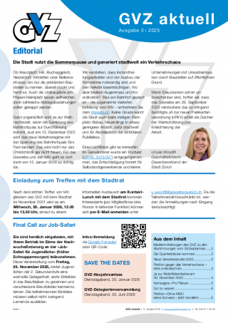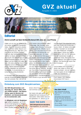 Beim Gewerbeverband der Stadt Zürich ist stehts etwas im Tun – im vier Mal jährlich erscheinenden «GVZ aktuell» finden Sie nützliche Informationen und Veranstaltungshinweise.